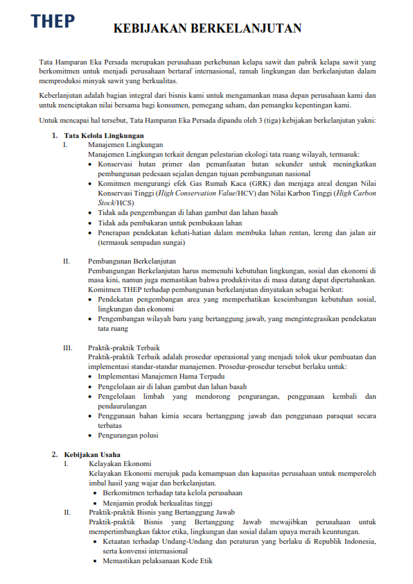 PT. THEP berkomitmen dalam melaksanakan aktivitasnya mengutamakan keselamatan dan kesehatan kerja. Aktivitas spraying ( penyemprotan) herbisida di salah satu afdeling Kebun Balunijuk Estate 4, seluruh pekerja diwajibkan menggunakan Alat Pelindung Diri yang disediakan oleh perusahaan secara gratis sesuai dengan tingkat resiko bahayanya. Untuk memastikan efektivitas APD dan kesadaran penggunaannya oleh pekerja, Dept HSE (Health Safety & Environment) PT. THEP melakukan supervisi dan sosialisasi secara reguler kepada para pekerja spraying. Hal ini sejalan dengan visi perusahaan untuk membangun perkebunan kelapa sawit berkelanjutan Indonesia (ISPO / Indonesian Sustainable Palm Oil).